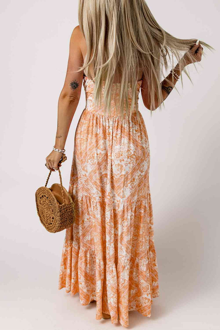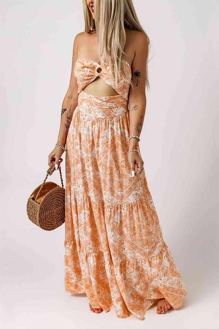 Elevate your style with our Floral Strapless Sweetheart Neck Cutout Maxi Dress. Embrace the printed pattern and flaunt the backless, tiered design. This dress features a flattering sweetheart neckline, sleeveless elegance,...