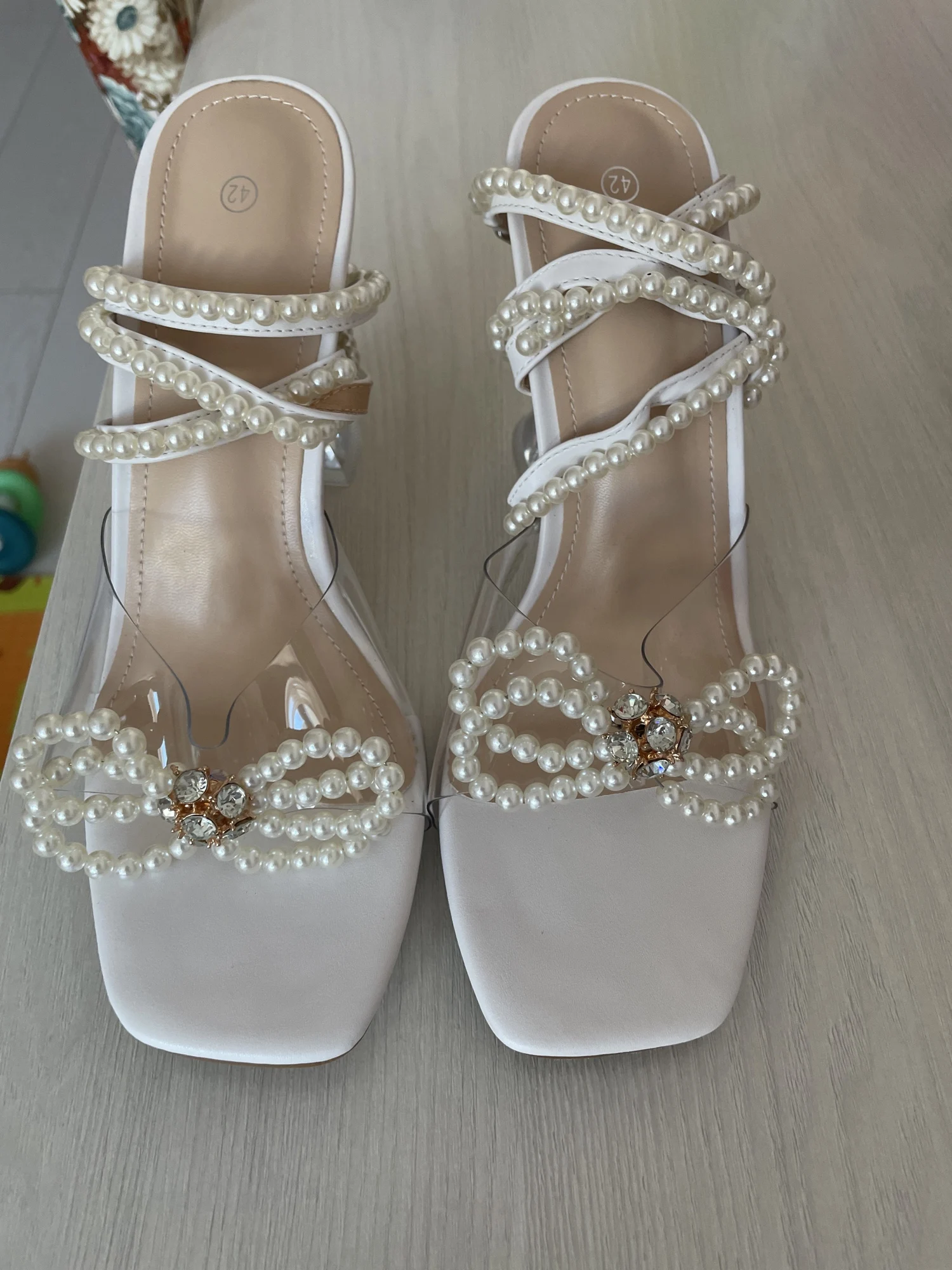 Enhance your wedding ensemble with our exquisite collection of high-heeled sandals adorned with white string beads. These glamorous gladiator shoes, complete with elegant buckles, are the ideal choice for a stunning party dress. Available in sizes 35-42, they are a perfect fit for your special day. Step into a world of elegance and celebrate your wedding in style!