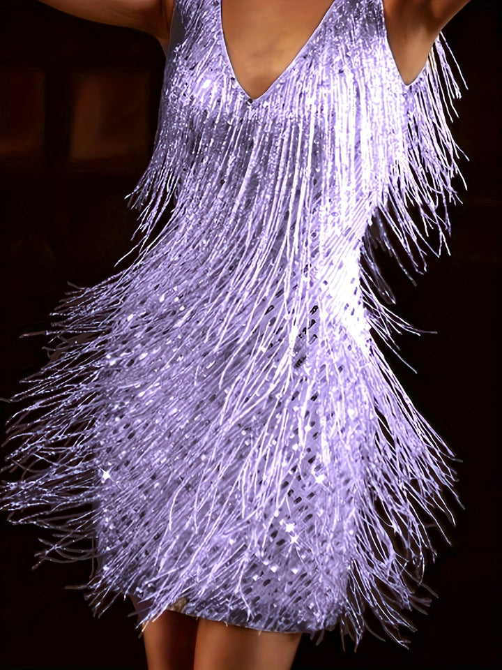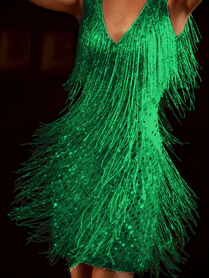 Turn heads in this Plus Size Sequin Fringe Dress! Featuring a V-neck and full fringe sequin decorations, this dress is perfect for Bridesmaids, parties, or any formal event. Sparkle and shine in this stunning dress that will make you feel confident and stylish all night long!
